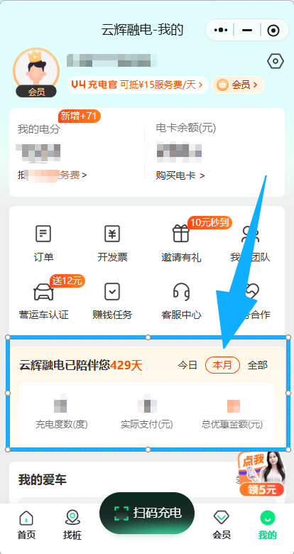 晒出你的云辉充电“战绩”,可在我的页面查看