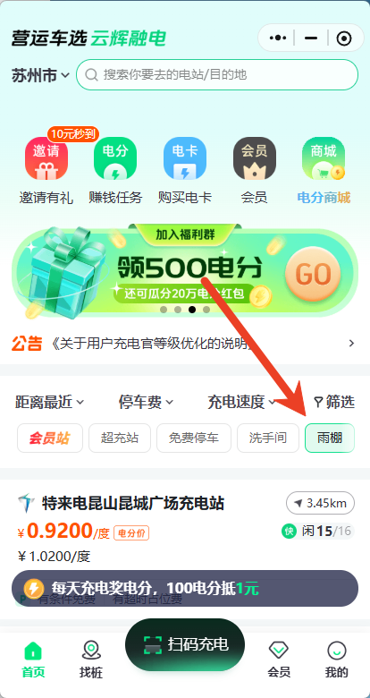 充电时选带遮雨棚、室内的场站,减少露天充电风险。